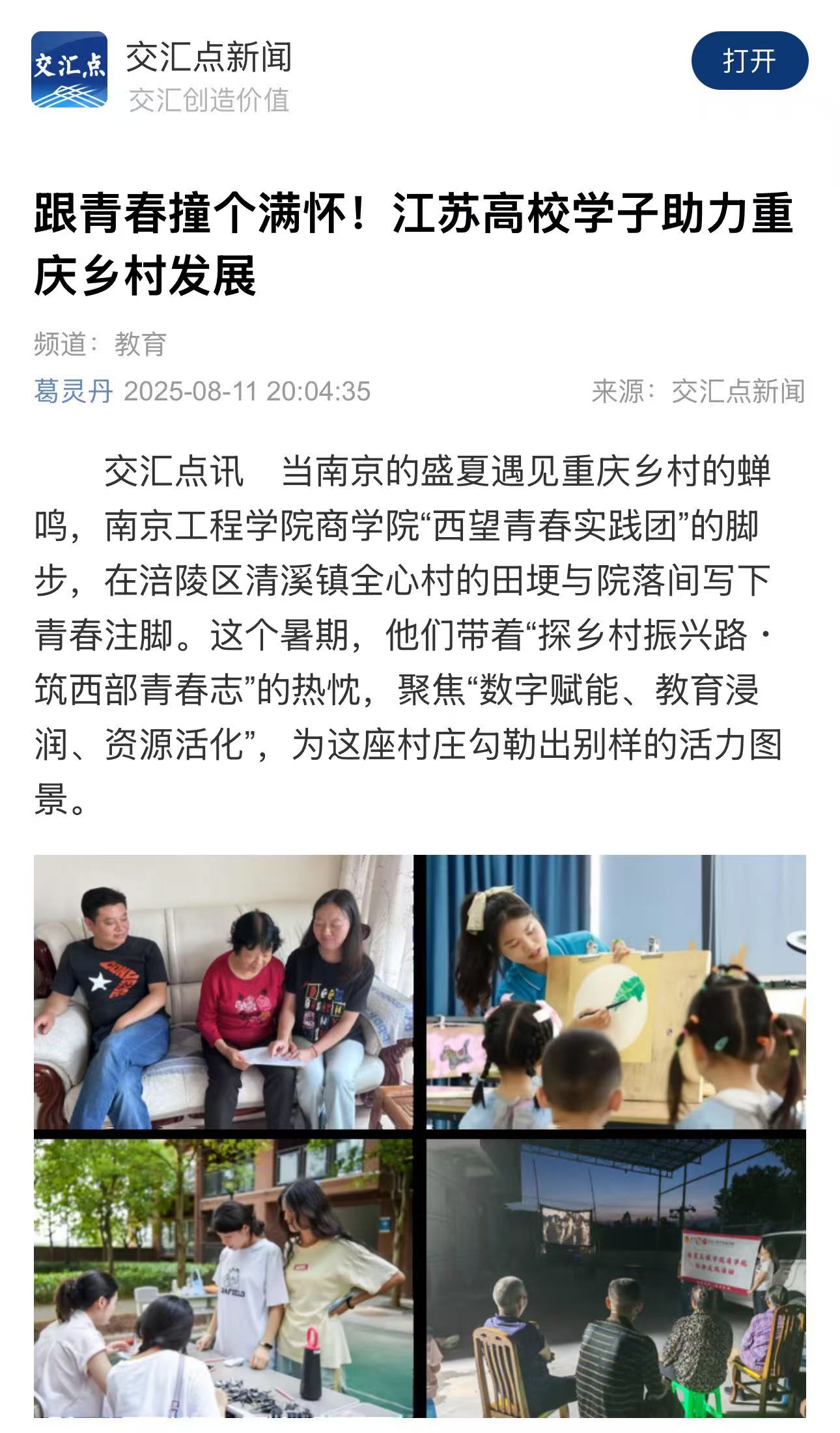 《交汇点新闻》:跟青春撞个满怀!江苏高校学子助力重庆乡村发展